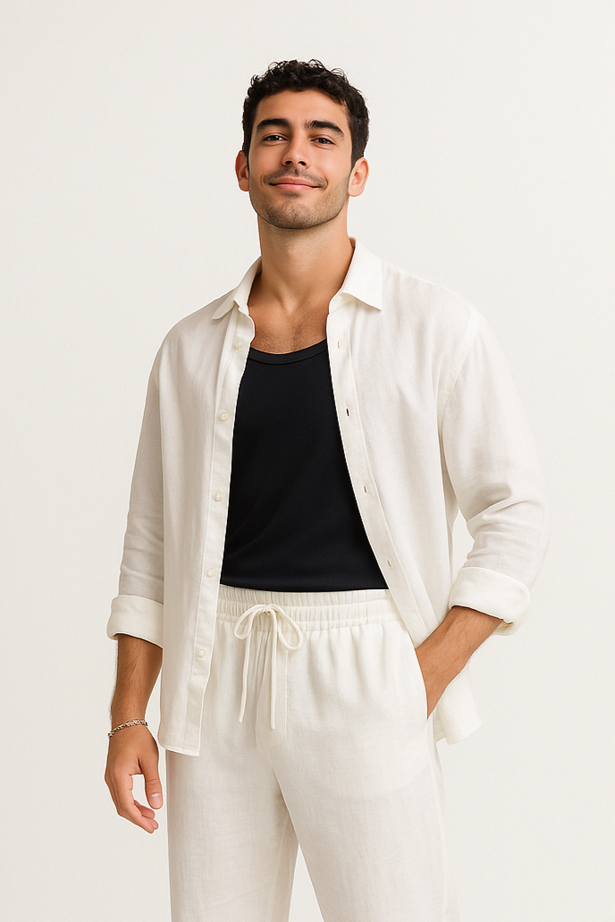 Meet The Drift — a unisex oversized linen shirt designed for everyday ease and summer confidence. Crafted from ultra-lightweight, breathable 100% linen, it features a relaxed fit, clean silhouette, and no pockets for a truly minimal aesthetic.